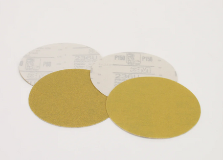 An aluminum oxide Hookit II disc constructed on a C weight, intermediate paper backing. Grade: P150. Primary markets: metalworking, woodworking.