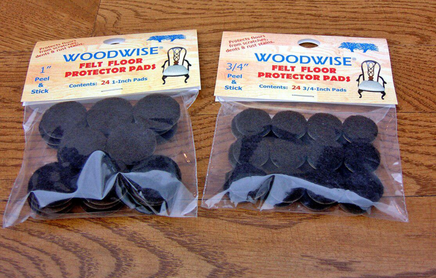 Made from long-lasting quality felt and superior glue. For furniture legs of all kinds. Comes in two sizes: 3/4" and 1" brown felt, in packages of 24 for the retail market, and in bulk packaging: 48, 96, 252 and 1,000. Simply peel back protective film and apply to a clean, dry surface