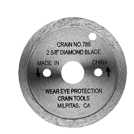 his Segmented Diamond Rim blade is 2-7/8" in diameter and has a 1/2" depth of cut. This blade is compatible with all versions of the Crain Toe-Kick Saw..