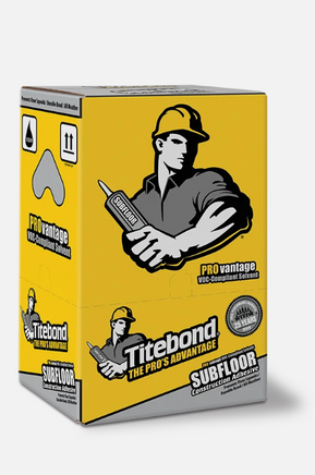 Titebond Solvent-Based Subfloor Construction Adhesive is a professional strength formula that is specifically designed for subfloor installations and general plywood use. It provides a permanent bond that remains flexible, reduces nailing and prevents squeaky floors. It offers a strong initial tack and excellent bond strength. It is covered under the 25 Year Silver Subfloor Warranty against subfloor squeaks and pops.
