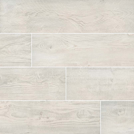 Blanca Wood Look Tile offers a durable porcelain surface with a matte finish that mimics natural wood grain and knots in soft white and beige tones. Ideal for floors, walls, and backsplashes, it provides an elegant, easy-care option for both residential and light-commercial spaces.