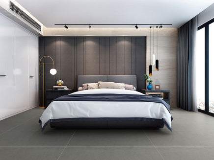 The Dimensions collection offers Concrete Porcelain Tile in a dark gray shade that evokes the appearance of poured concrete. Combining the refined, modern aesthetic of concrete with the durability and low maintenance of porcelain, these large-format tiles provide a stylish and versatile solution for floors, accent walls, backsplashes, and countertops.