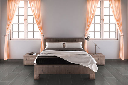 The Dimensions collection’s Graphite Porcelain Tile showcases a rich, deep gray concrete appearance, ideal for crafting elegant and modern surfaces on walls, floors, and countertops. It is especially suited for wall installations and commercial flooring. Offered in large formats of 12x24 and 24x24, along with 2x2 and 4x12 bullnose tiles, it provides versatile design options to enhance any space.