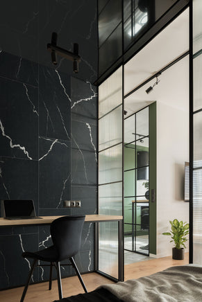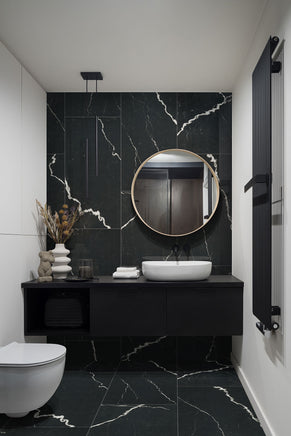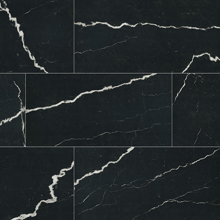 Experience the striking elegance of the Soho Noir Porcelain Tile, sized at an impressive 24” x 48”. Designed to highlight the natural beauty of onyx, this tile features a deep black base with bold white veining. Ideal for both floors and walls in residential or commercial environments, its rectified edges allow for precise installation with minimal grout lines. The polished surface adds a refined touch, combining durability with a sleek appearance. Easy to install and highly versatile, this tile enhances any interior with lasting sophistication and style.