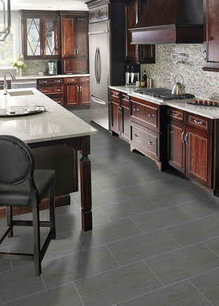 Graphite Porcelain Tile from the Focus collection showcases medium gray hues with subtle tonal stripes, ideal for contemporary and modern interiors. Available in a matte finish, these tiles come in large 12x24 formats, along with 2x2 and 3x18 bullnose options to support versatile design applications. Perfect for countertops, flooring, backsplashes, accent walls, and other architectural elements, these tiles offer both style and functionality for your space.