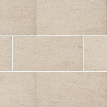 Livingstyle Beige Arterra Pavers showcase gentle beige hues with a delicate pattern that evokes the look of natural stone. These elegant glazed tiles come in a matte finish and are offered in 24x24 and 18x24 sizes, matching the available porcelain tile dimensions. Ideal for diverse exterior design applications, they also seamlessly integrate into indoor spaces to achieve a cohesive indoor/outdoor aesthetic.