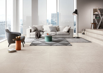 Living Style Pearl Porcelain Tile Pavers, part of the Arterra® Porcelain Pavers series, feature soft beige-gray tones with a subtle natural stone-inspired pattern. These sophisticated glazed tiles have a matte finish and measure 24x24 inches. Perfect for a variety of outdoor uses, they also blend effortlessly into interior settings to create a unified indoor-outdoor design.