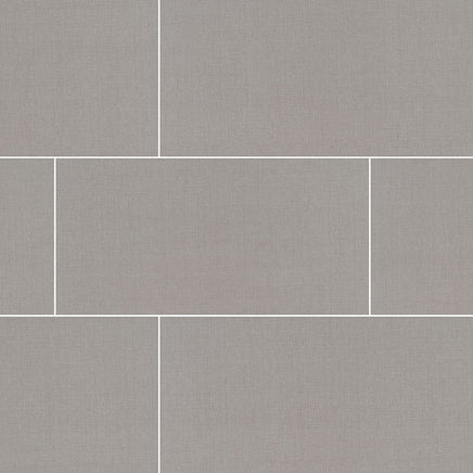 The Loft Gris porcelain tiles are perfect for a range of uses including accent walls, backsplashes, countertops, floors, and shower surrounds. These contemporary gray tiles showcase a refined cross-weave fabric texture that brings dimension and interest. Available in the sought-after 12x24 size, they are complemented by coordinating tiles to support versatile design options.