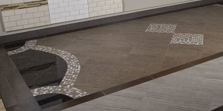 These Taupe Porcelain Tiles from the Metropolis collection showcase a blend of mid-tone taupes and browns, mimicking the appearance of stained concrete. Perfect for countertops, flooring, and wall applications in both residential and commercial settings. Available in 12x24 tiles with coordinating 3x12 bullnose tiles, offering versatile options for design and installation.