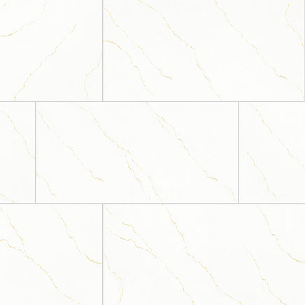 Elevate your environment with Miraggio Gold porcelain tile, showcasing a crisp white base accented by delicate gold veining inspired by genuine quartz stone. Ideal for indoor and covered outdoor settings such as countertops, backsplashes, and feature walls, this tile combines durability with versatility. Available in matte and polished finishes, it comes in various formats including 12" x 24" and 24" x 48" rectangles, 2" hexagons, as well as bullnose trim and pool coping options, making it a seamless addition to any design scheme.