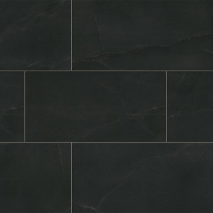 Regallo Midnight Agate Porcelain Tile showcases a stunning black onyx marble appearance accented by elegant gray veining, bringing a timeless sophistication to any environment. Offered in multiple sizes—including the modern 12” x 24” and expansive 24” x 48” formats, as well as detailed 2” x 2” mosaics and sleek 3” x 24” bullnose trims—this tile adapts to diverse design needs. Available in both matte and polished finishes, it enhances backsplashes, walls, and floors in kitchens, bathrooms, and high-end commercial spaces. Ideal for residential and commercial projects, it seamlessly fits styles ranging from classic to contemporary.