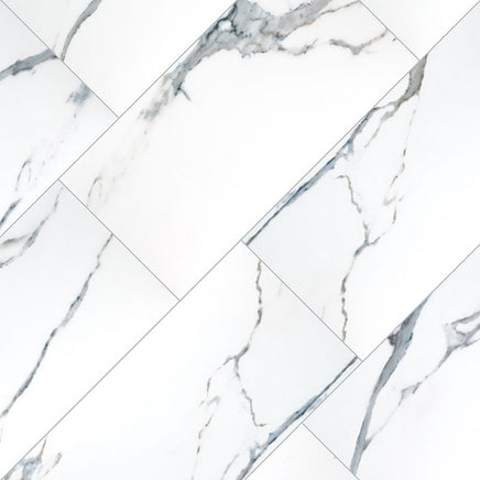 Savoy Azula Porcelain Tile showcases a crisp white base accented by striking gray veining. Ideal for creating stunning backsplashes, feature walls, entryways, and flooring in both residential and commercial settings, these tiles combine the elegant appearance of marble with the strength, ease of care, and cost-effectiveness of porcelain. Available in matte and polished finishes, and in 12" x 24" and 24" x 48" formats, they provide versatile design options. A coordinating 3" x 24" Bullnose is also available to perfectly finish your project.