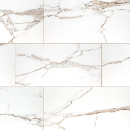 Savoy Crema Porcelain Tiles feature a creamy white base accented by elegant gold and brown veining, enhancing any space with refined sophistication. Ideal for creating luxurious accent walls, backsplashes, or flooring, these durable and low-maintenance tiles bring timeless beauty to both residential and commercial settings. Available in matte and polished finishes, and offered in 12"x24" and 24"x48" sizes, they provide versatile design options. Complement your installation with the coordinating 3"x24" Bullnose for a seamless, polished appearance.