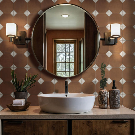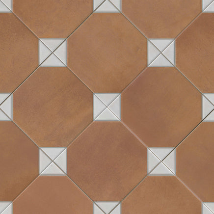 Via Bianchi Cotto captures the warmth of vintage hydraulic floors with a modern twist in a 13" x 13" matte porcelain tile. Featuring a pre-scored design that imitates hand-laid patterns, it blends soft white highlights with rich cotto hues for an artisanal, layered look. This tile’s unique fusion of classic charm and contemporary style makes it perfect for bathrooms, kitchens, accent walls, and beyond—adding distinctive character and inviting elegance to any room.