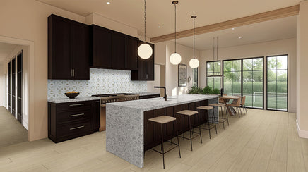 Whitehill Sandlewood porcelain tile transforms any space with its striking 9” x 48” large format. Featuring warm sandy hues and realistic wood grains and knots, it offers a soft lime-washed look that feels both natural and inviting. Each tile displays unique wood patterns, creating an authentic plank effect enhanced by a sophisticated matte finish and pressed edges. Ideal for walls and floors in homes or businesses, this tile combines lasting durability with resistance to water, scratches, and stains. Enjoy the beauty of real wood with the easy care and strength of porcelain.