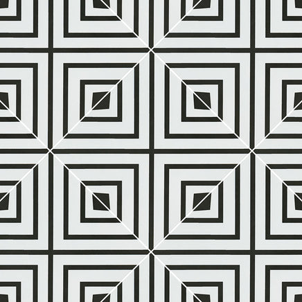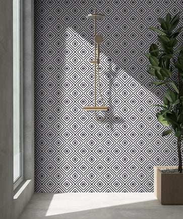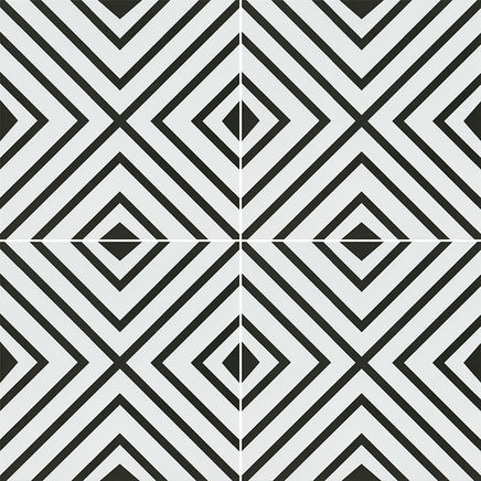 Discover the Modena Encaustic Tile from the Zaria Collection, showcasing a striking white base adorned with an elegant black diamond pattern. Each tile is carefully handcrafted to align perfectly with others, forming a seamless, eye-catching design. Its unique matte finish is ideal for backsplashes, floors, showers, countertops, and more. This tile is not only durable and low-maintenance but also simple to clean, making it perfect for busy households. Elevate your home’s style and functionality with the sophisticated Modena Porcelain Tile today..